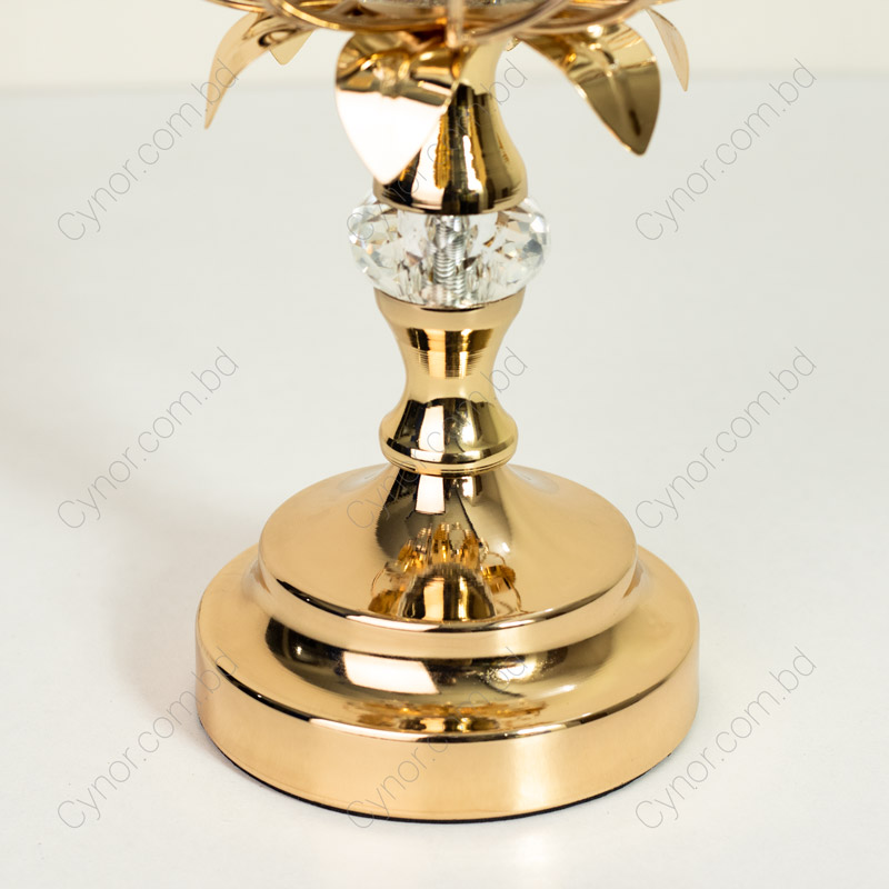 Golden Color Metal Body With Glass Flower Shape Candle Holder