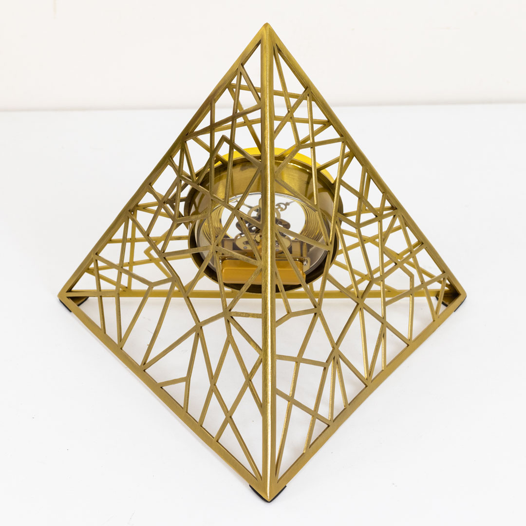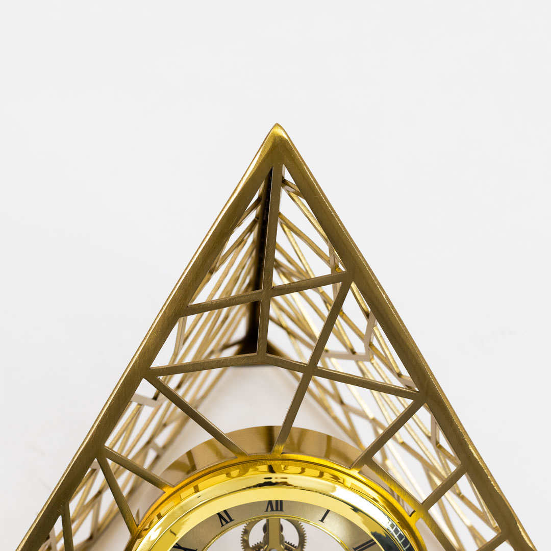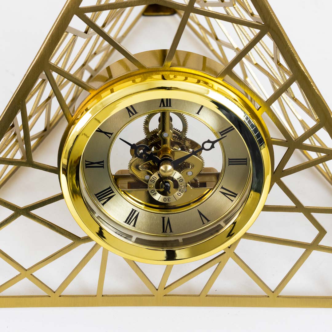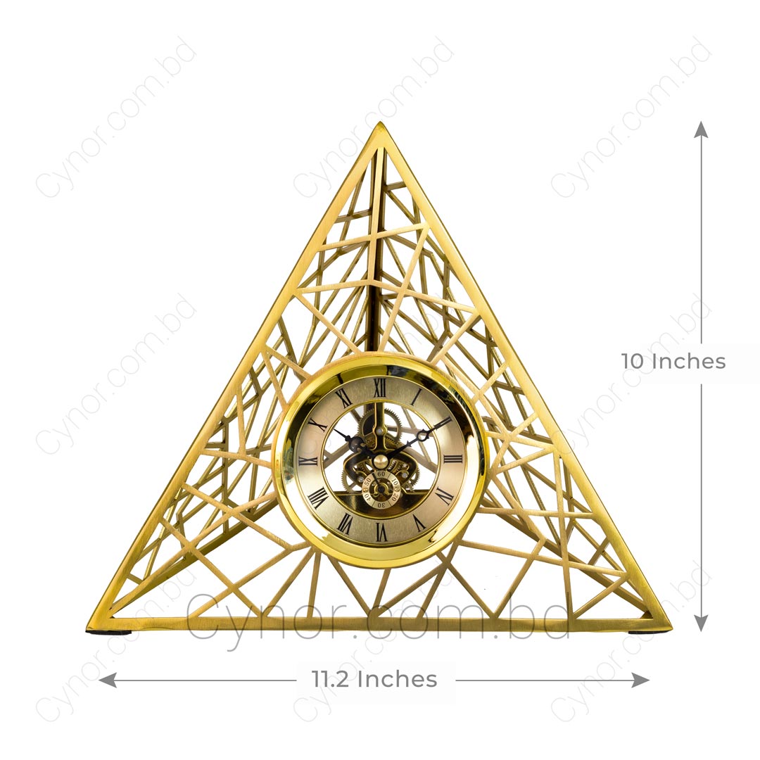 High Quality Metal Body Golden Color Pyramid Shape Metallic Dial Design Table Clock