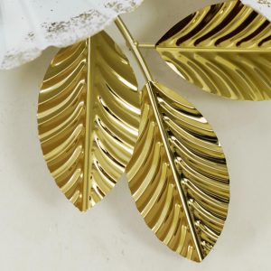 Luxury Stainless Steel Aquatic Leaf Wall Decor Golden and White Finish