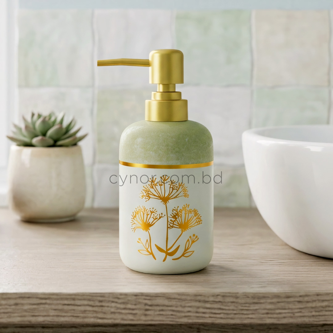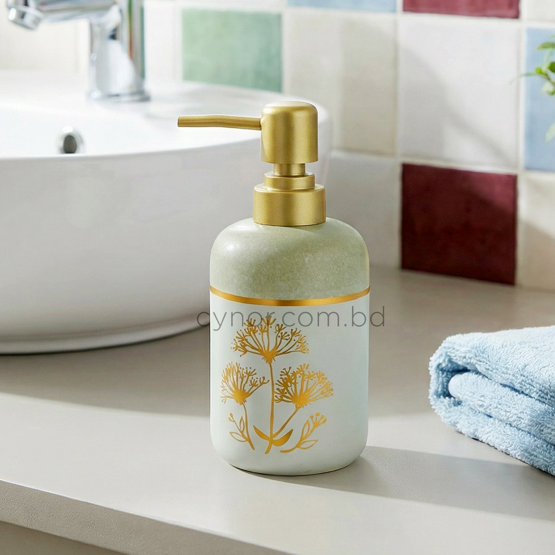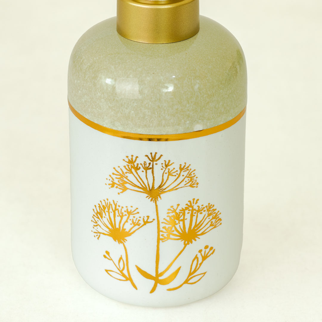 Sage Green White Golden Porcelain Ceramic Soap Shampoo Dispenser
